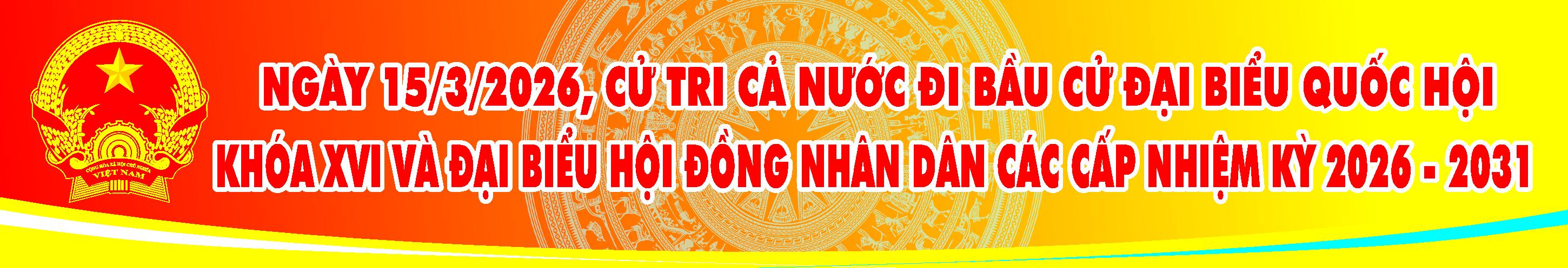 NHIỆT LIỆT CHÀO MỪNG NGÀY BẦU CỬ ĐẠI BIỂU QUỐC HỘI KHOÁ XVI VÀ ĐẠI BIỂU HỘI ĐỒNG NHÂN DÂN CÁC CẤP NHIỆM KỲ 2026 - 2031; NGÀY 15/3/2026, CỬ TRI CẢ NƯỚC ĐI BẦU CỬ ĐẠI BIỂU QUỐC HỘI KHOÁ XVI VÀ ĐẠI BIỂU HỘI ĐỒNG NHÂN DÂN CÁC CẤP NHIỆM KỲ 2026 -2031